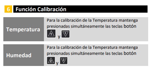 • Calibración: Ofrece la posibilidad de calibrar tanto la temperatura como la humedad si se detectan desviaciones respecto a un instrumento de referencia.